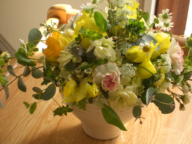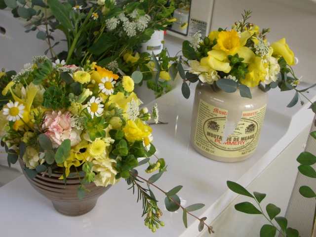 レストランで使っている マスタードの空きビンに 残りのお花が入りました。